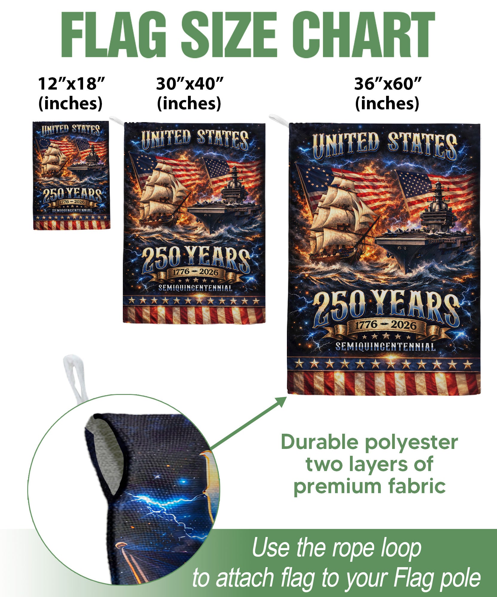 1776-2026 USA 250th Anniversary Garden Flag – Navy History & Modern Power Patriotic Double Sided Flag