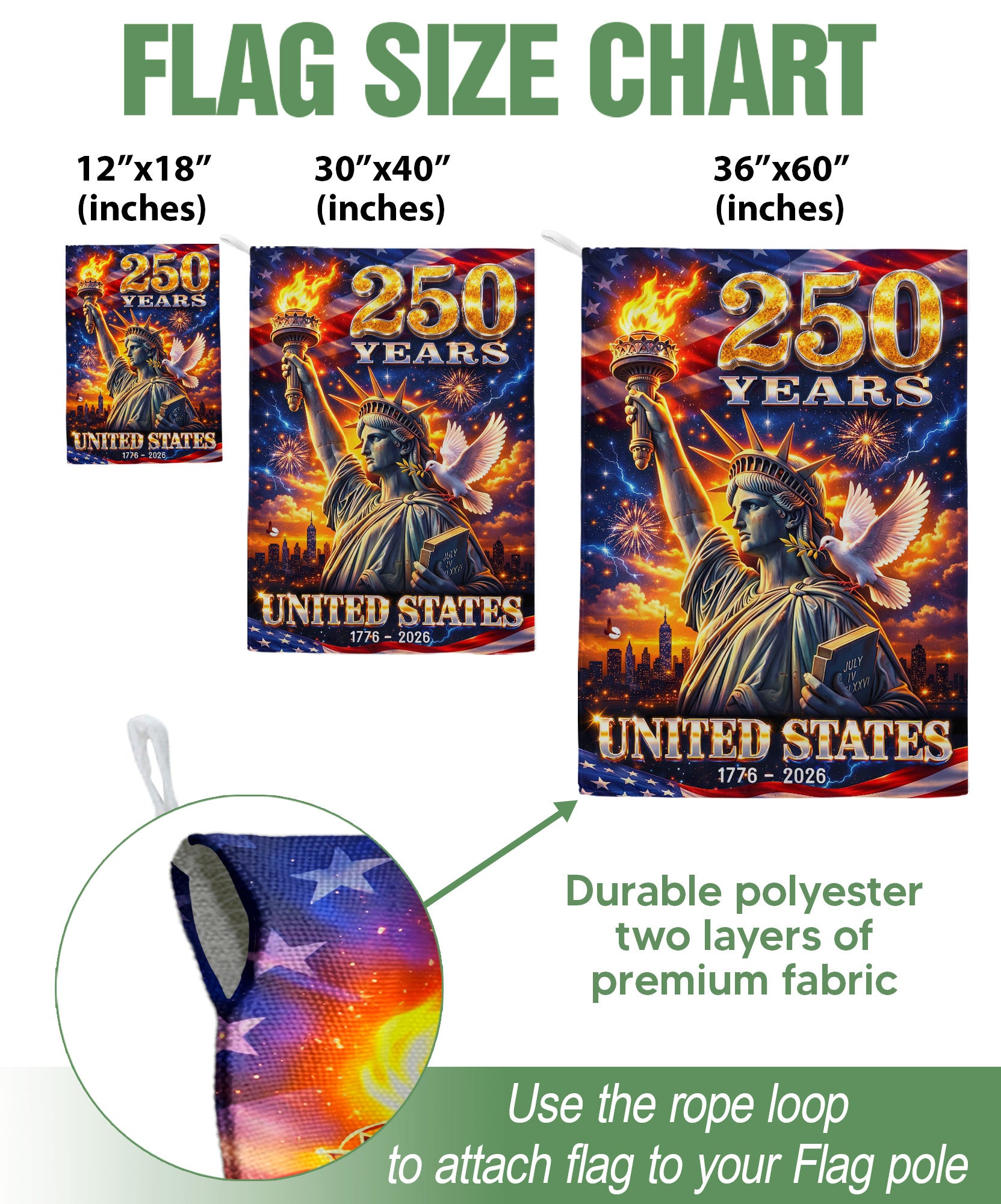 250 Years United States Garden Flag Statue of Liberty Patriotic 1776 2026 Yard Banner