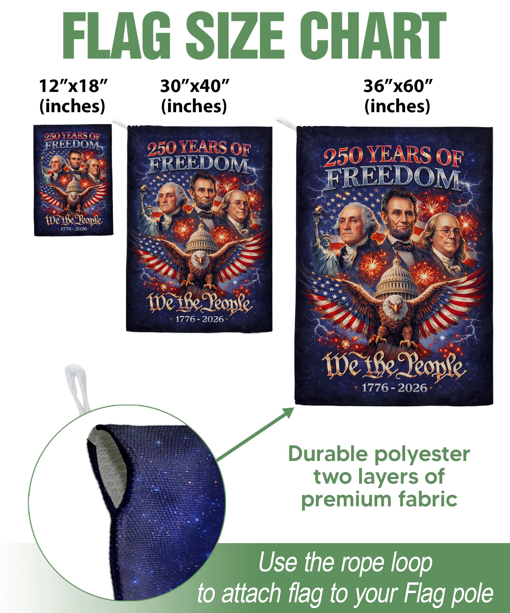 America 250 Years of Freedom 1776-2026 Garden Flag – Founders Washington Lincoln Franklin 250th Anniversary Double Sided Banner