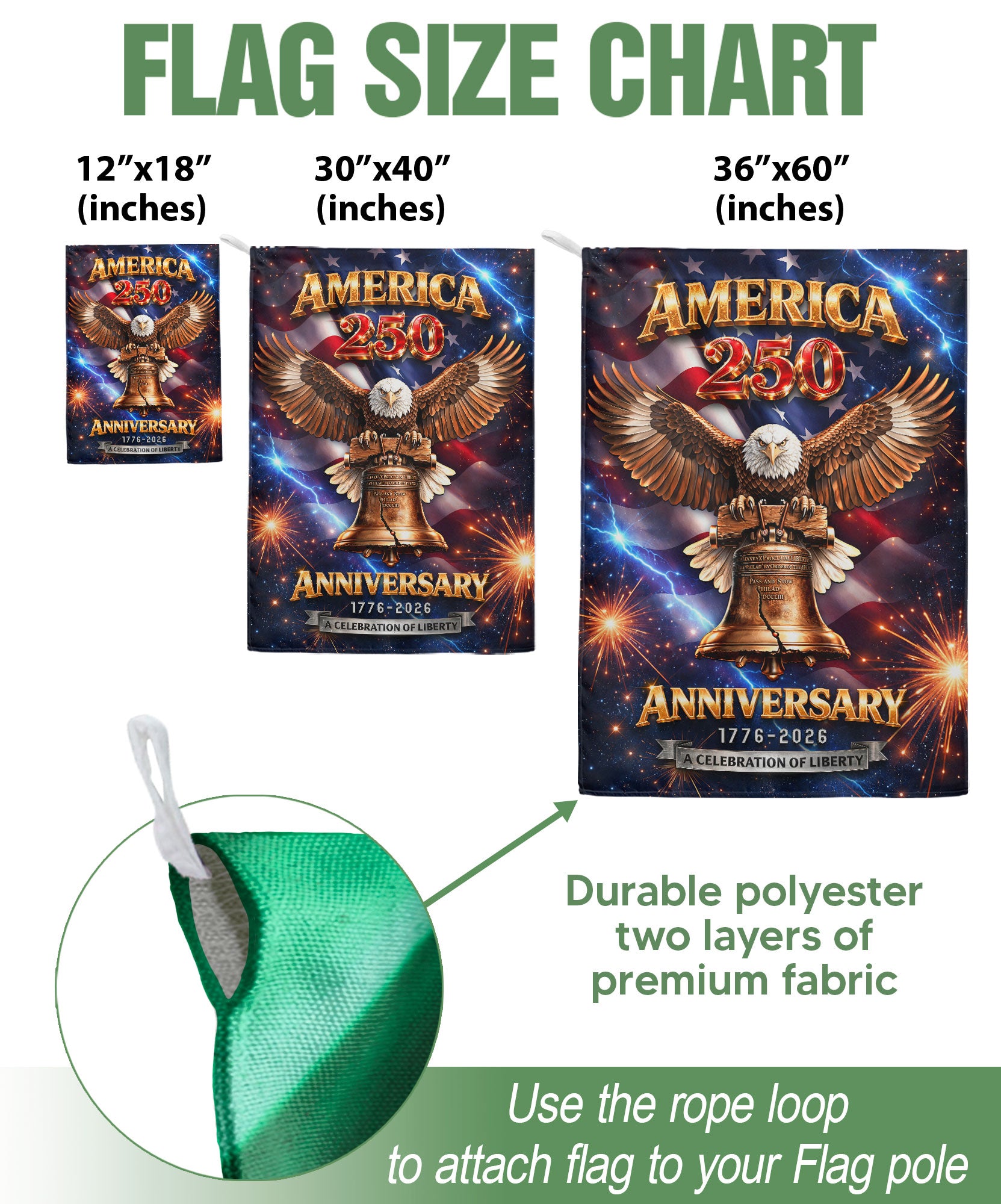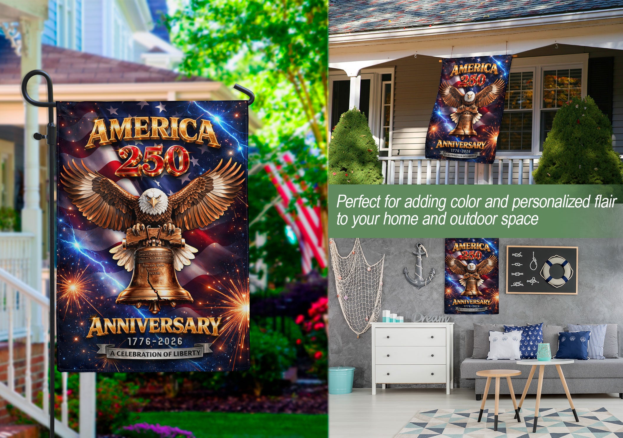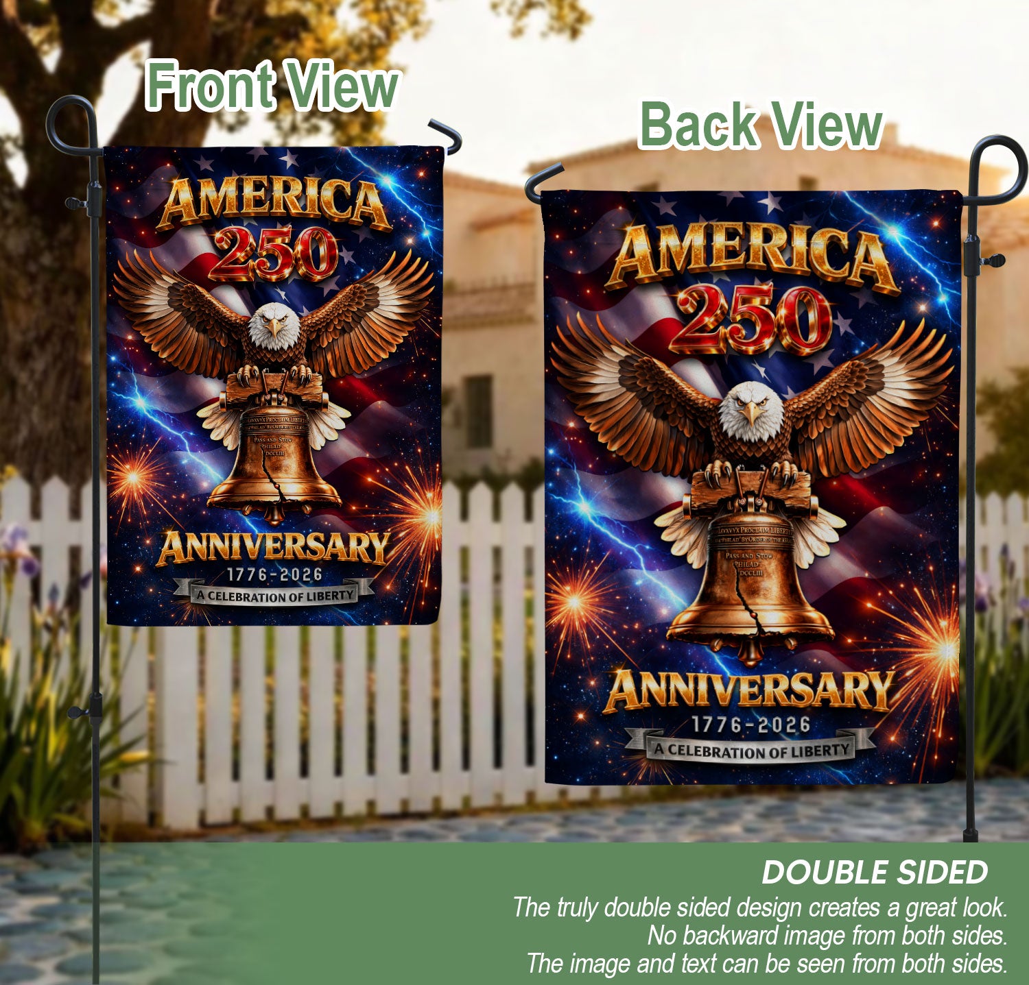 America 250th Anniversary 1776-2026 Garden Flag – Liberty Bell & Bald Eagle 250 Years of Freedom Double Sided Outdoor Banner