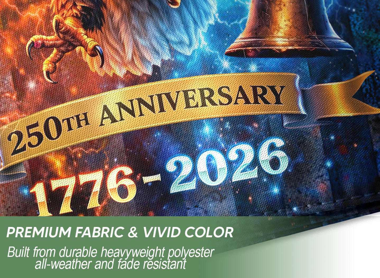Marking the historic 250th anniversary, this double-sided outdoor flag reflects 250 years of independence and resilience, bringing a bold patriotic spirit to your yard, porch, or garden display.