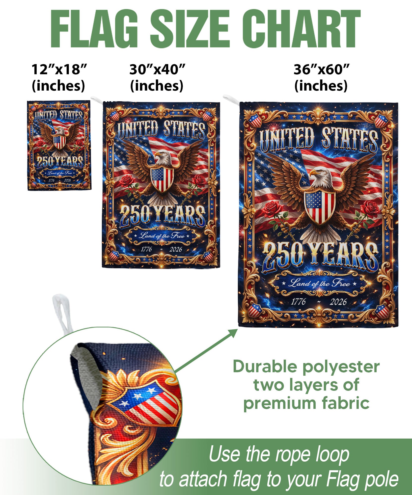 United States 250 Years Garden Flag Eagle Patriotic 1776 2026 Land of the Free