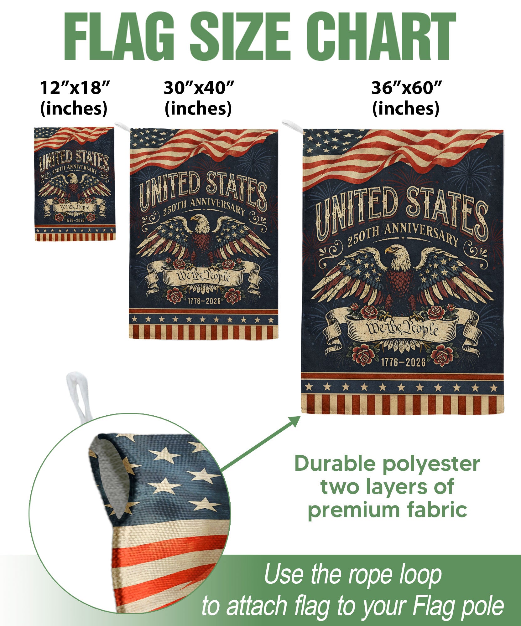 United States 250th Anniversary 1776-2026 Garden Flag – We The People Bald Eagle 250 Years of Liberty Double Sided Banner