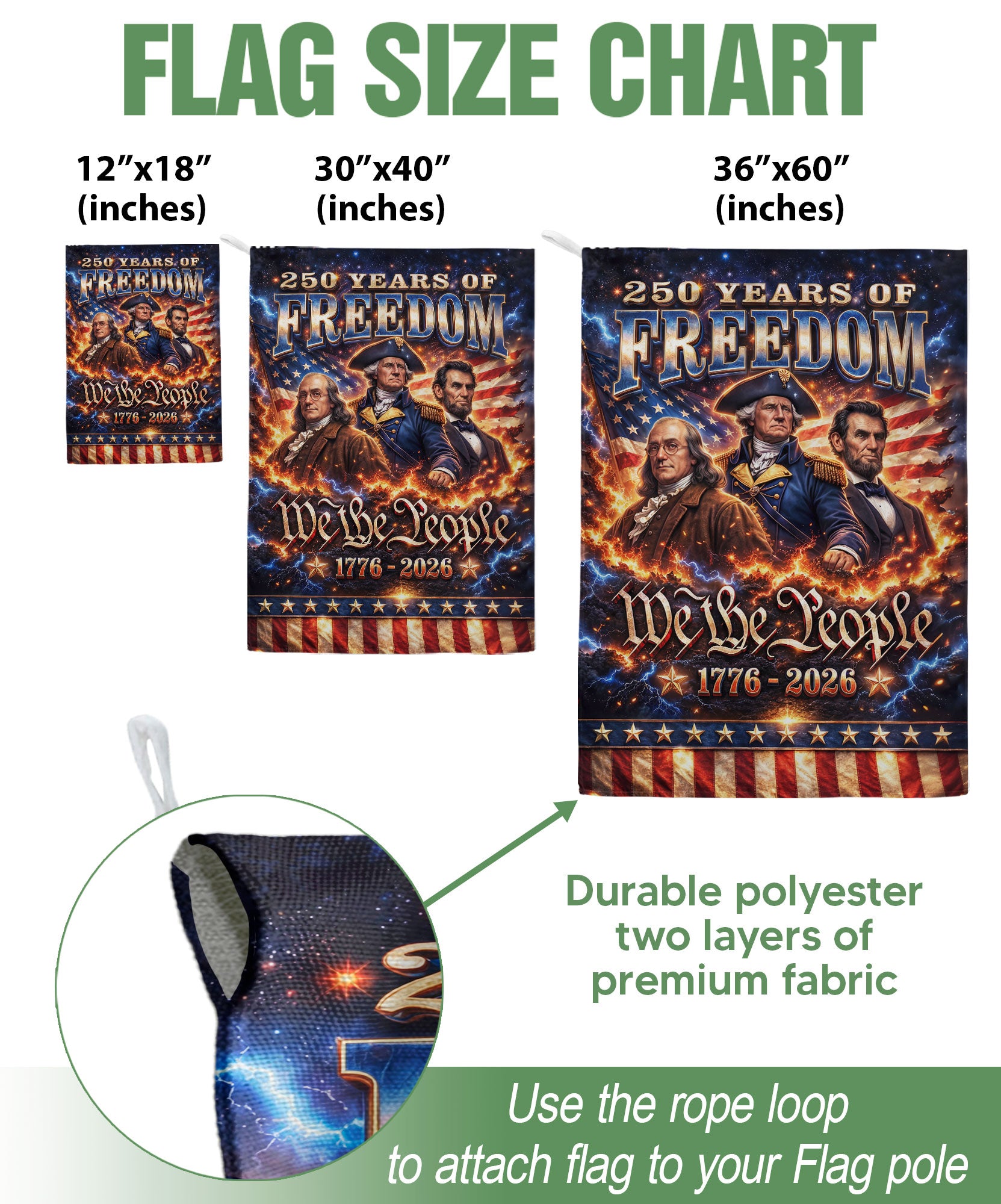 We The People 250 Years of Freedom 1776-2026 Garden Flag – Washington Lincoln Franklin 250th Anniversary Double Sided Decor